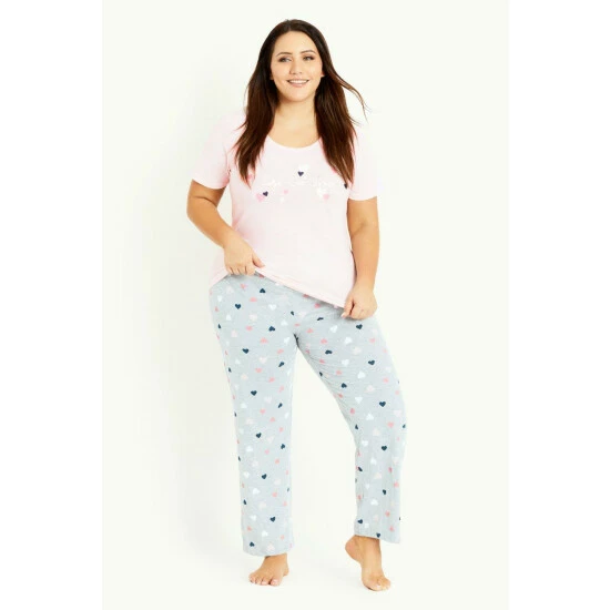Snooze in style with our Rise And Shine Sleep Set, offering a super cute heart print and soft stretch fabrication. Combining a cute tee and cosy sleep bottoms, you’ll never want to take this playful PJ set off! Top features a round neckline, short sleeves, heart print front in a relaxed fit, pull over style. Bottoms feature an elasticated waistline with drawstring, heart print all-over, relaxed full length leg and pull up style. Team with fuzzy socks and an eye mask to catch those Zzz’s!