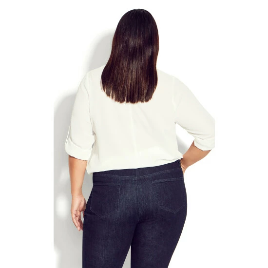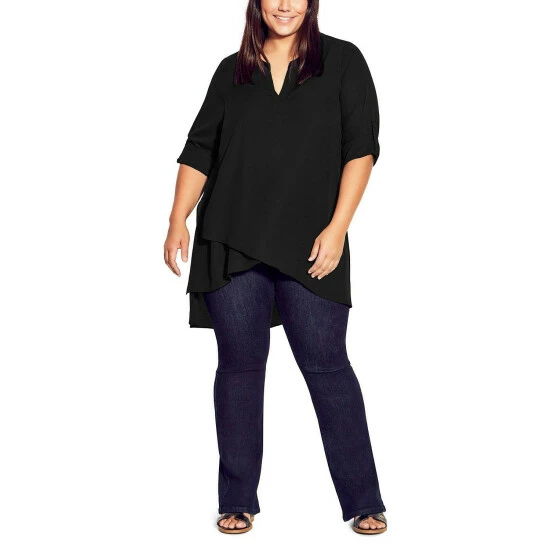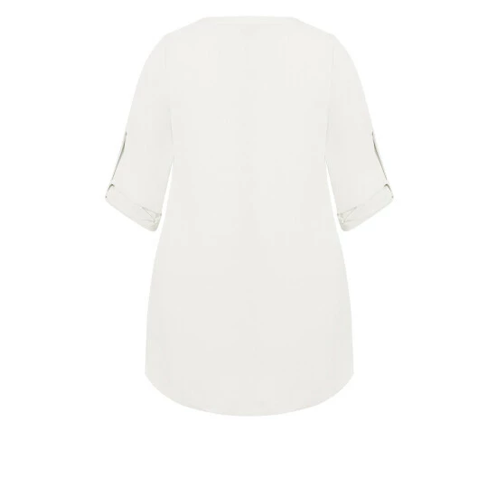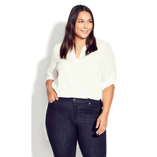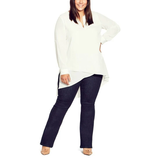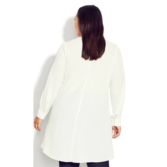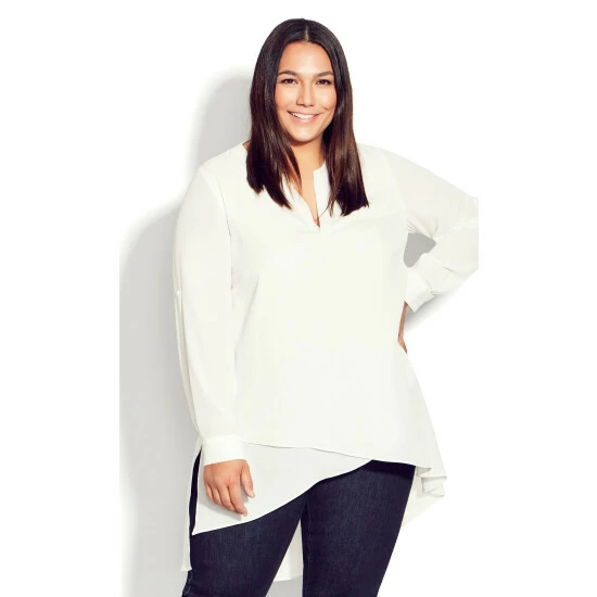 For a lovely look you can easily style, set your heart on the Beyond Overlay Tunic. This style combines the classic design of a placket V-neckline and full-length sleeves with a layered crossover hemline for an irresistibly gorgeous look. Key Features Include Placket V-neckline , Full length sleeves with button tab detail , Semi sheer fabrication , Relaxed silhouette , Layered crossover hi lo hemline.