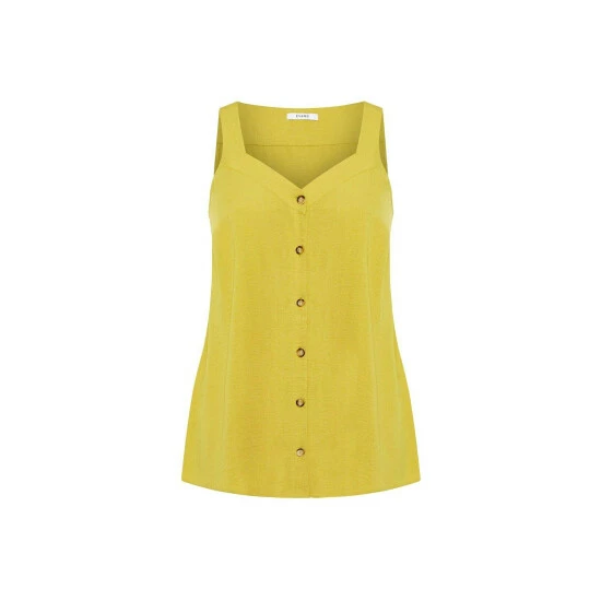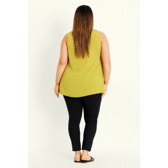 A burst of lime green to elevate your casual collection! The Button Through Vest features a V-neckline, buttoned front and lightweight fabrication, perfect for steamy summer days. Whether you’re out for brunch or strolling the city streets, this casual top has you covered! Key Features Include: V-neckline, Sleeveless cut, Buttoned front, Lightweight non-stretch fabrication, Relaxed fit, Unlined, Slightly flared silhouette, Hip length Create a chic but pared back summer look with black skinny jeans and espadrille sandals.
