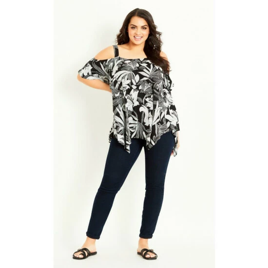 Easy, breezy and oh-so fun-loving, our Cold Shoulder Top brings a youthful touch to any outfit. Featuring a bold print on yellow base, as well as a trendy cold shoulder cut, this top will perfectly fit and flatter your fabulous curves. Key Features Include: Straight neckline, Cold shoulder cut, Lightweight non-stretch fabrication, Relaxed fit, Flared silhouette, Unlined, Pull over style, Hip length, Sharkbite hemline Wear with cropped jeans, wedges and a round rattan bag for chic summer style.