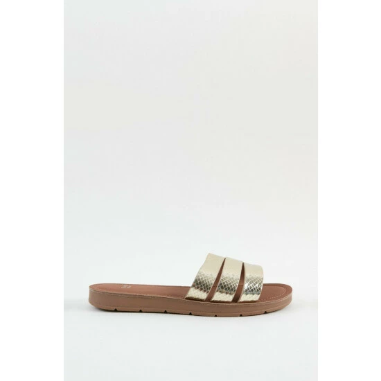 Stylish slip on sandals for your everyday wardrobe. A metallic textured upper brings instant style, whilst a comfy sole and easy slip on design will have you wearing these on-repeat.