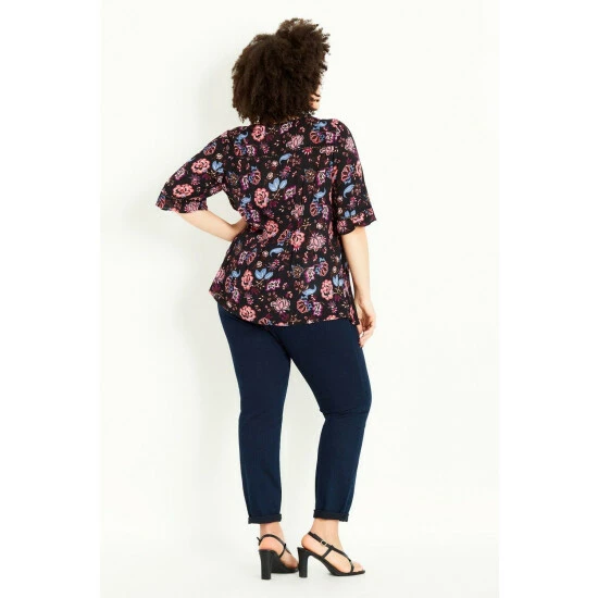 Inject some playful print into your collection of tops with the Floral Festival Top! This cute casual style offers a lovely floral print and comfortable relaxed fit, as well as short sleeve coverage and dainty crochet trims. Key Features Include: Round neckline with keyhole tie feature, Elbow-length frilled sleeves, Crochet trims, Relaxed fit, Textured fabrication with slight stretch, Unlined, Pull over style, Hip length Elevate your summery look with a denim mini skirt, wedges and a straw handbag!.