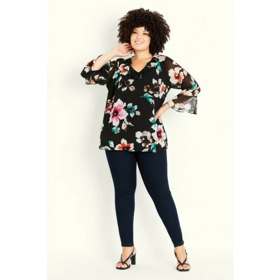 Channel your femininity in the floral print of the gorgeous Floral Frill Top. Featuring three-quarter frilled sleeves, a v-neckline and comfortable relaxed fit, it’s the perfect choice for desk-to-dinner styling. Features include a v-neckline, 3/4 frilled sleeves, relaxed fit, pull over style, hip length. Level up your day look with light wash jeans, block heels and a sleek saddle bag.