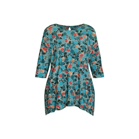 Play with florals with the Floral Hanky Hem Top. Boasting a relaxed fit and round neckline, look effortless in the floral print. Key Features Include: Round neckline, 3/4 sleeves, Hanky hem, Relaxed fit, Soft stretch fabrication, Hip length Add a curve-loving denim skirt.