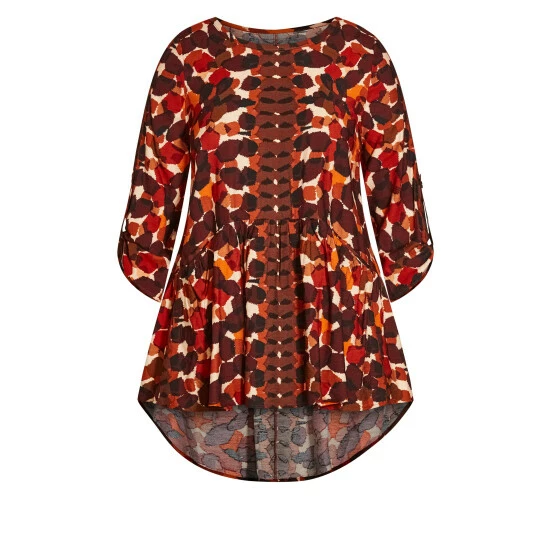 Set your sights on the utterly fabulous and flattering Frida Print Pocket Top. With its round neckline, 2 functional front pockets and ruffled trim hemline, you’d instantly say yes to this style! Key Features Include Round neckline, 3/4 length sleeves with button tabs, Pull-over fit, 2 functional front pockets, Relaxed silhouette, Ruffled trim hemline.
