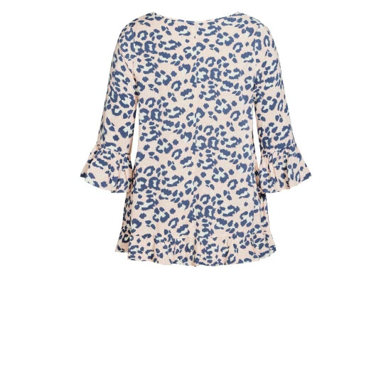 Style a casual chic look with a fashion-forward top. The Gem Ruffle Tunic boasts a timeless V-neckline, alongside ruffle trim and an all-over animal print against a blush background. Key Features Include: V-neckline, 3/4 length sleeves with ruffle trims, Relaxed fit, Ruffle trim, Non-stretch woven fabrication.