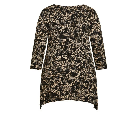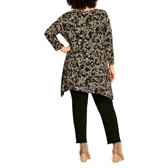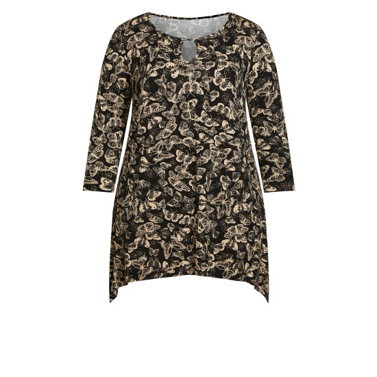 Make your outfit stand out with the Keyhole Swing Tunic. This style easily complements any outfit with its swing silhouette and paisley design. Key Features Include Boat neckline with keyhole cut-out, 3/4 length sleeves, Swing silhouette, Relaxed fit, Sharkbite hemline Create an eye-catching look with a tan maxi skirt.