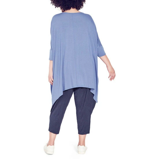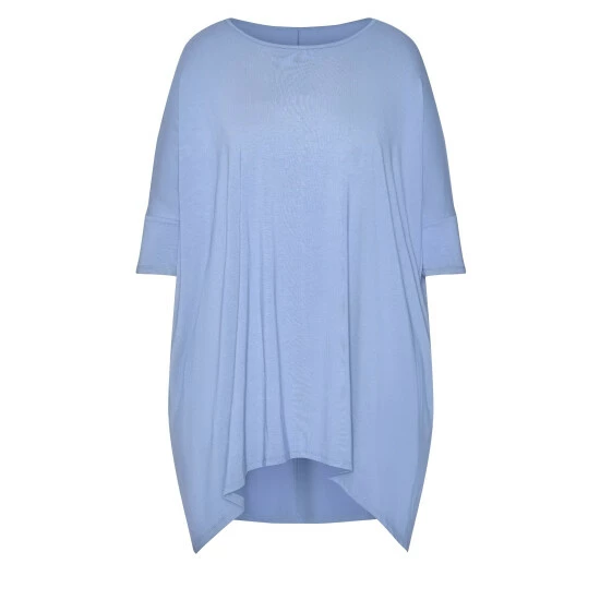 Settle into the chic, laidback feel of the Oversize Hanky Hem Plain Tunic. A soft blue hue matches this super-soft fabrication, offering total comfort with its dolman sleeves and asymmetrical longline handkerchief hemline. Key Features Include Round neckline, Elbow length dolman sleeves, Pull-over fit, Soft stretch fabrication, Relaxed silhouette, Asymmetrical handkerchief hemline.