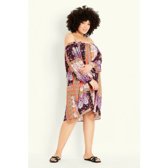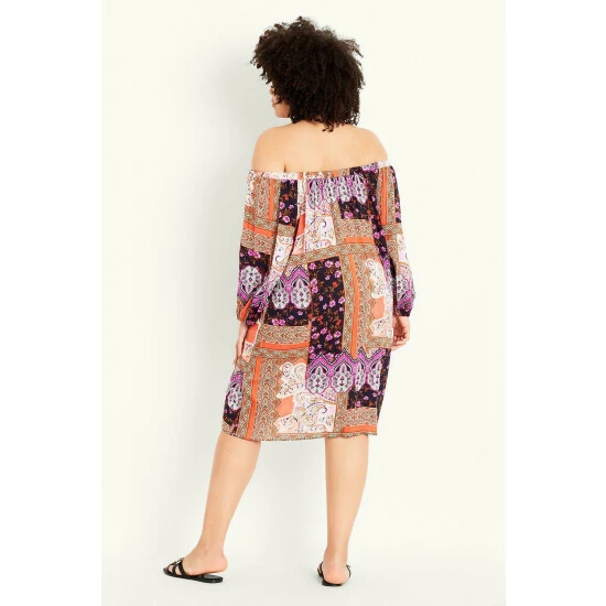 Style with a pop of print this summer in our ultra vibrant Patchwork Tunic! This lightweight and breezy style flaunts a seductive off-shoulder neckline and long sleeve coverage, as well as a relaxed fit and easy pull over design. Key Features Include: Elasticated off-shoulder neckline, Long elasticated sleeves, Lightweight non-stretch fabrication, Relaxed fit, Unlined, Pull over style, Above knee length Create a summery vibe with espadrilles and straw accessories like a woven hat and rattan bag.