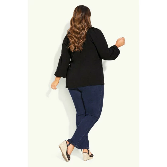Cute, breezy and undeniably on-trend, the Ruffle Front Blouse will add a touch of chic to your look. Whether you’re headed out for brunch with the girls or upstyling for the office, this long sleeved top is the perfect choice every time. Features include a ruffled neckline, long puff sleeves with elasticated cuffs, relaxed fit, unlined, pull over style, hip length. Tuck into a pair of boyfriend jeans and finish with sleek pumps for a glamorous brunch outfit.