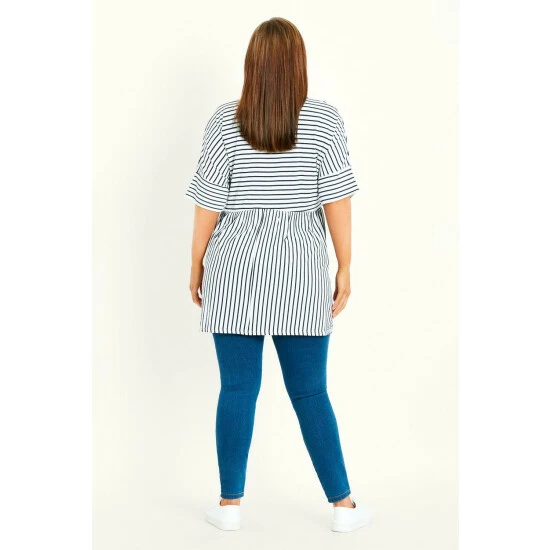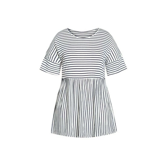 Keep it classic with the Stripe Peplum Top. Boasting a relaxed peplum silhouette and versatile stripe print, this comfortable top pairs perfectly with jeans and leggings. Key Features Include;, Round neckline, Short sleeves, Relaxed peplum silhouette, Stretch fabrication, Below hip length hemline.