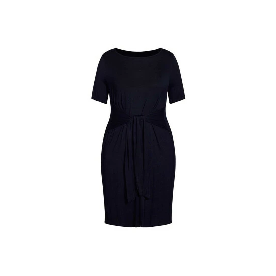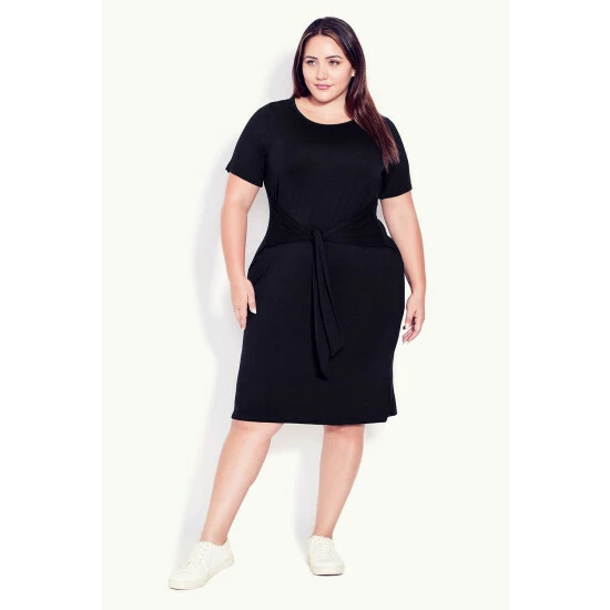 Envelope your curves in the gorgeous fitted stylings of our Tie Front Plain Dress! Flaunting a comfortable stretch fabrication and tie feature to cinch your silhouette, this form-flattering dress pulls out all the stops. Key Features Include: Crew neckline, Short sleeves, Tie front feature, Soft stretch fabrication, Fitted silhouette, Unlined, Pull over style, Knee length Upstyle for a cute day date with espadrille wedges and a woven clutch.