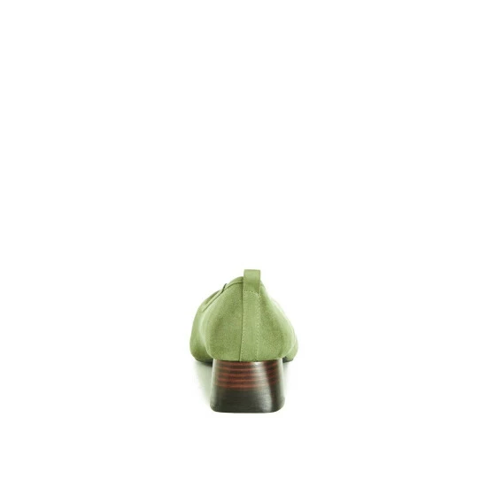 Make the most of go-to style in the glamorous finish of the Low Heel Sleek Pump! In bold green faux suede, these heels are anything but subtle with a wide fit and a chic finish. Key Features Include: Round closed toe, Faux Suede fabrication, Wide fit, Back pull tab, Block heel.