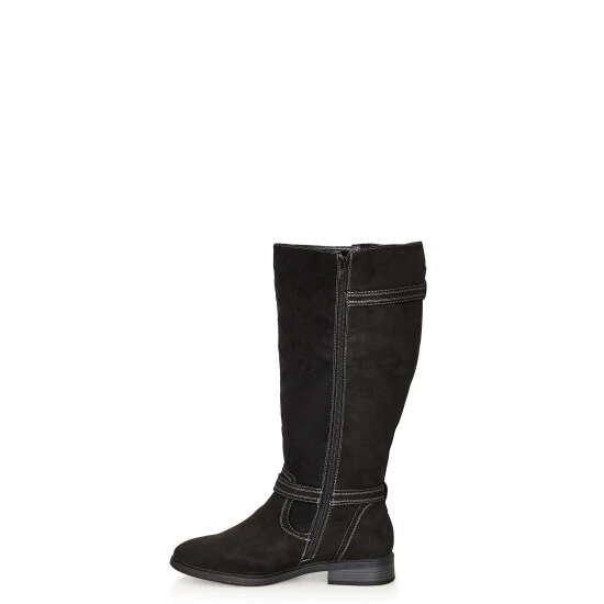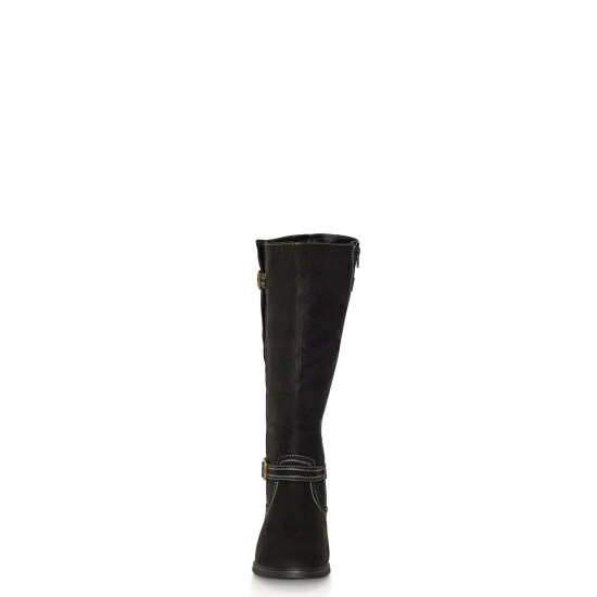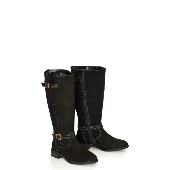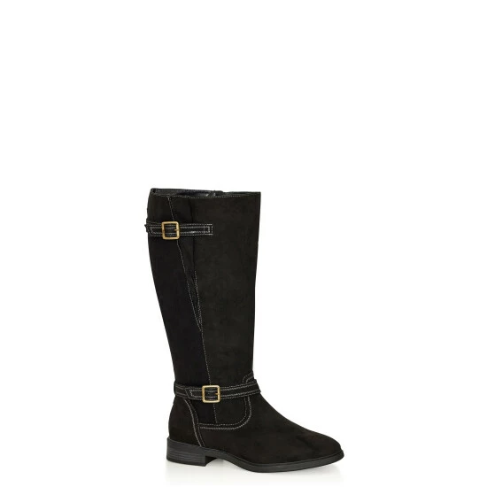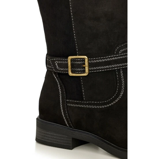 Perfect any outfit with the Marcy Long Boot. Ideal for the winter months, look effortlessly chic with the strap and buckle detailing, low block heel and faux suede finish of these gorgeous boots. Key Features Include Round toe , Wide fit , Side zip closure , Faux suede fabrication , Knee high , Strap and buckle detail , Low block heel.